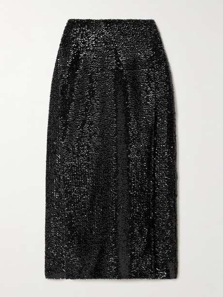 Emilia Wickstead's Fall '25 collection is inspired by the iconic style of the silver screen. This 'Kanji' skirt is made with crepe and covered in scores of sequins, which create a gorgeous shimmer and make it hang beautifully, too.
