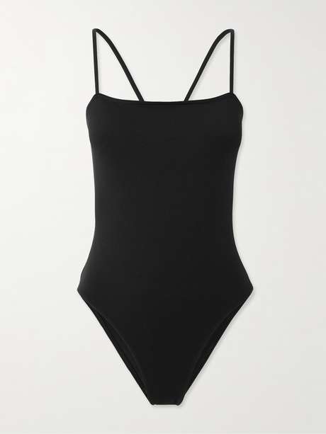 Eres' 'Dandy' swimsuit is inspired by glamorous '70s styles. It has a sleek square neck and an open back with a neat bow. The briefs provide medium coverage.