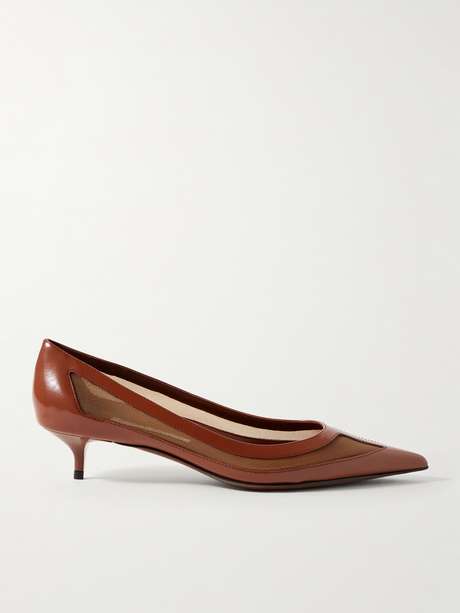 Jimmy Choo's 'Amelia' pumps will elegantly ground any outfit. They're made from leather trimmed with mesh in a classic point-toe shape and set on 30mm kitten heels.