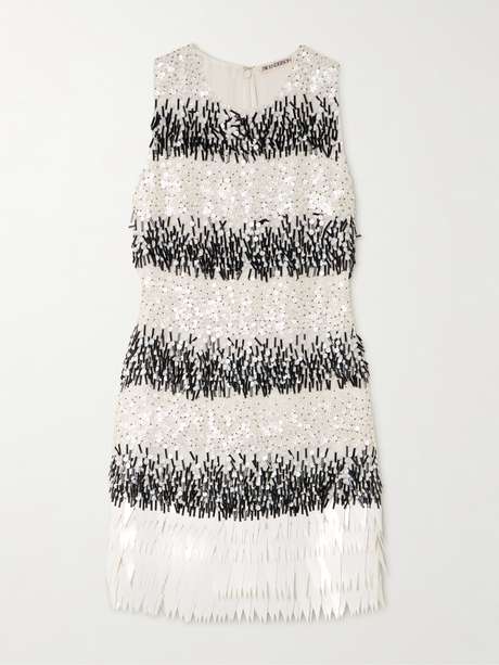 JW Anderson's mini dress recalls the glamour of flapper styles from the 1920s. Made from chiffon, it's embellished with tiers of light-catching sequins, bugle beads and jagged pailettes, all arranged to resemble fringing. Wear yours with barely-there sandals.