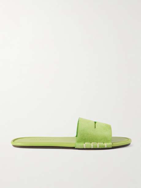JW Anderson has a unique ability to blend style codes in creative, unexpected ways. Made from suede, they have wide straps with whipstitched edges and penny slots that borrow from traditional loafers.