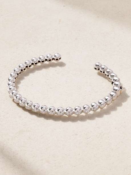 L'Atelier Nawbar's bracelet is part of the label's 'Atom' collection - the glossy black enamel hand-painted along the sphere beads represent 'Carbon'. It's made from 18-karat white gold and inlaid with 0.520-carats of shimmering diamonds. Wear yours stacked with similar styles.