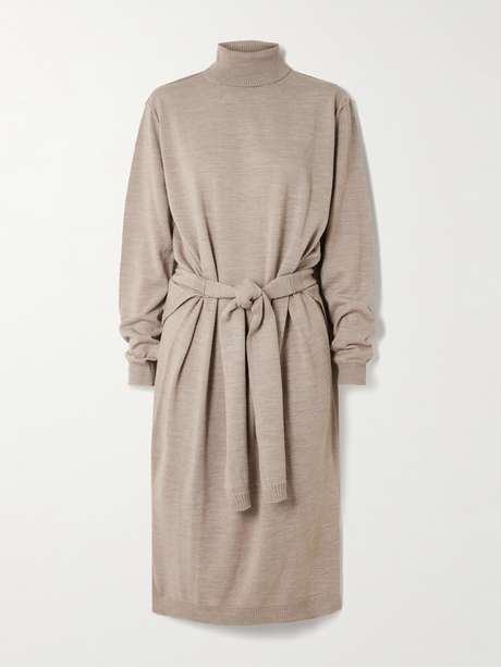 Timeless styles with a modern twist are LEMAIRE's forte, as this midi dress proves. It's knitted from wool-blend in a timeless shade of 'Light Taupe' and is topped with a cozy turtleneck. The overlay detail gives the look of a sweater being tied at the waist.