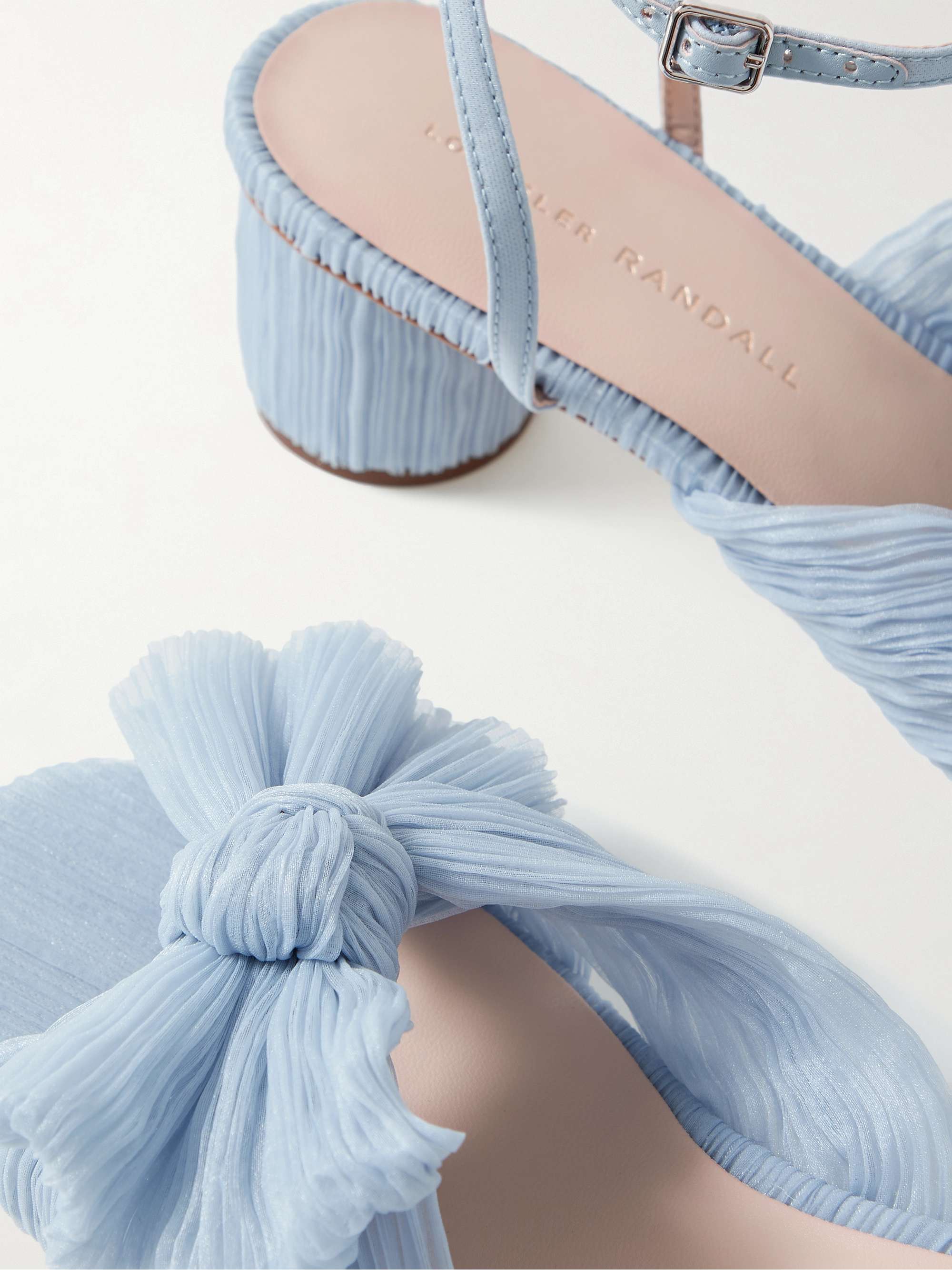 Loeffler Randall's shoes never compromise on comfort for the sake of glamour. Set on manageable block heels, these 'Dahlia' sandals are made from plissé-organza and topped with signature bows. The wraparound ankle straps provide a secure fit.