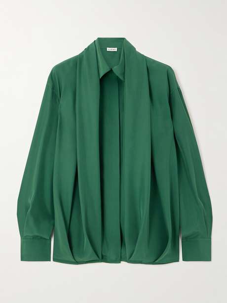 Curves and round forms appear across Loewe's Fall '25 collection - almost every garment has its own artful take. Made from silk, this blouse is gathered along the shoulders, creating sweeping drapes that tuck in at the bubble hem.