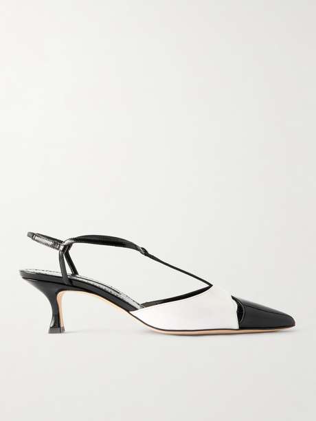 Designing shoes with poise and elegance comes naturally to Manolo Blahnik, and these 'Turgimod' pumps are no exception. They've been made in Italy from patent-leather with cutouts on the pointed toes and rest on comfortable 50mm kitten heels. The slingback straps ensure you can slip them on and off effortlessly.