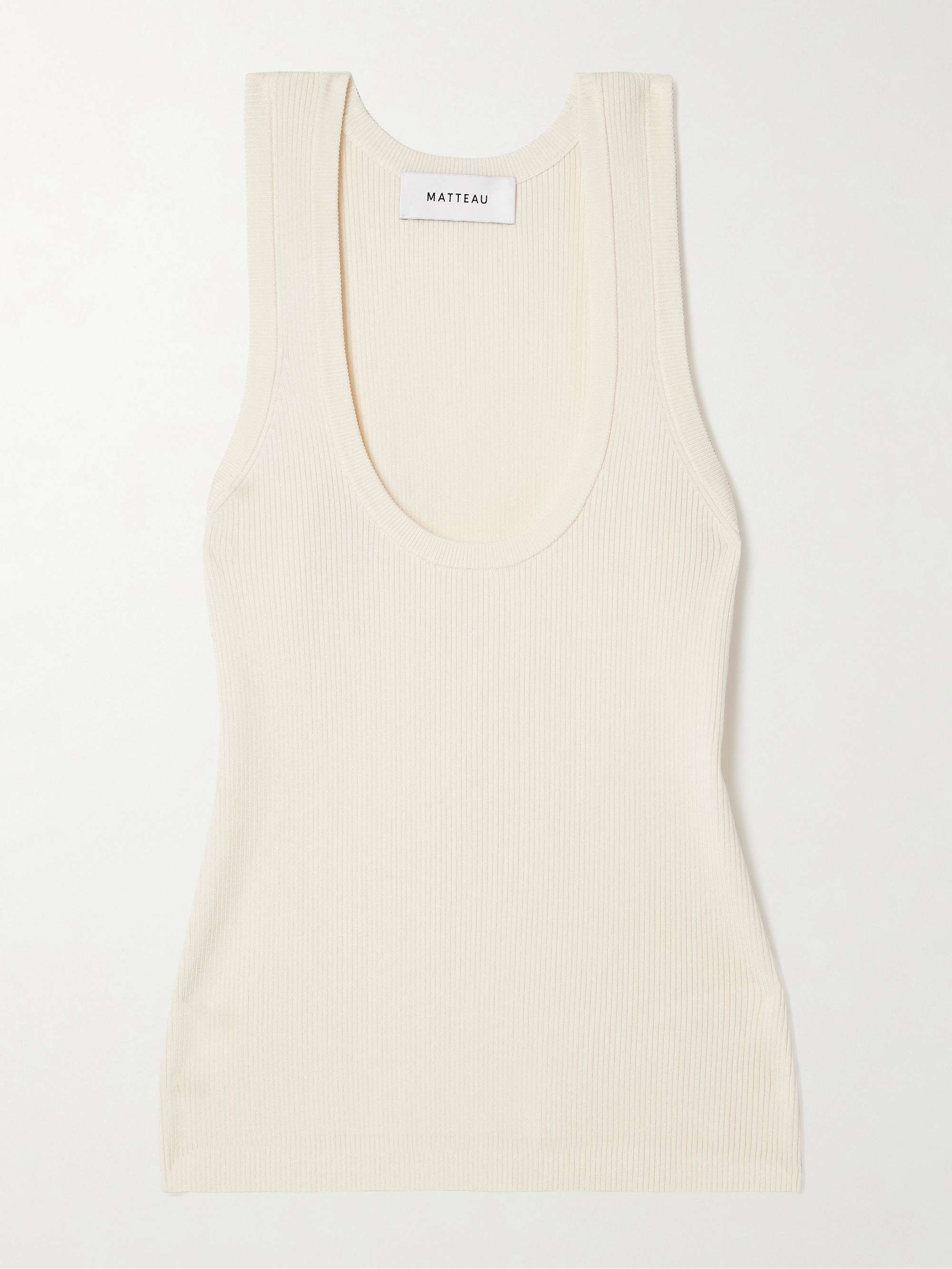 Matteau's wardrobe staples are always effortlessly cool and beautifully made. This versatile cream tank is made from a soft and stretchy ribbed-knit blended with 79% certified viscose and has a scoop neckline.