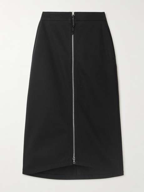 "Functional, yet elegant, and realized in textures of graphic all-black" defines Moncler Genius' capsule with the legend himself, Edward Enninful. Tailored from structured cotton-twill, this midi skirt is fitted with a zip from the high-rise waist to the arced hem.