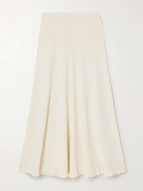 Proenza Schouler White Label's 'Stina' skirt pairs perfectly with the matching 'Phyllis turtleneck in our edit. Knitted for a lightweight feel, it has a comfortable elasticated waistband and skims your figure before flaring out to a ruffled midi hem.