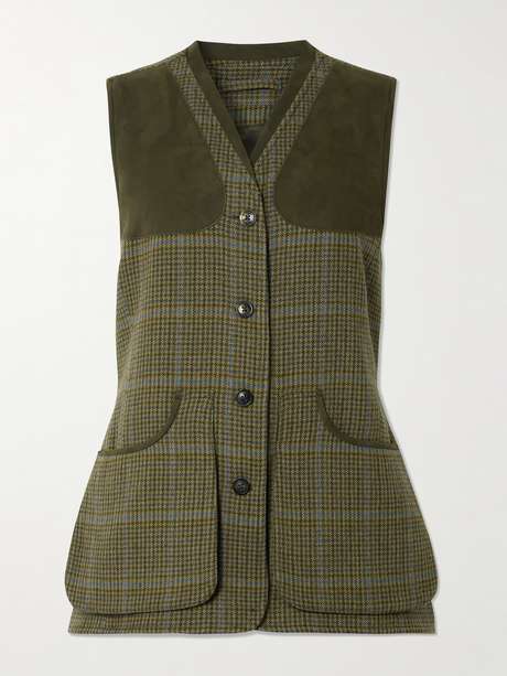 Purdey's outerwear is designed to last - every detail is considered, down to the final button. This checked vest is made from Scottish wool-tweed with brushed synthetic patches and adjustable tabs at the back to cinch in the waist.