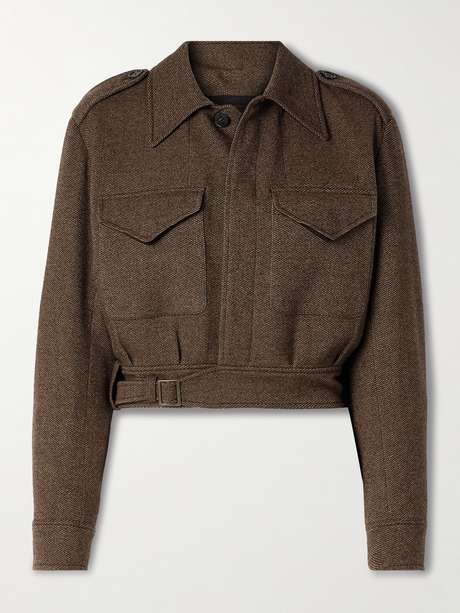 Ralph Lauren Collection’s 'Maddison' jacket is a modern take on timeless tailoring. Made from wool, it has shoulder epaulettes and flap pockets that nod to utilitarian styles. The built-in belt emphasizes the cropped shape. Complete the set with the matching pants.