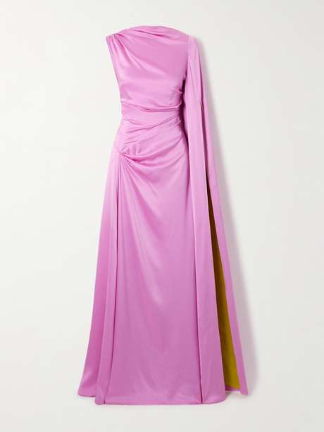 Roksanda's Fall '25 runway showed the art of drapery in full motion. This 'Oma' gown is bias-cut from silk-satin with a single cape-effect sleeve that's split to reveal the marigold lining. It's a stunning way to make your entrance.