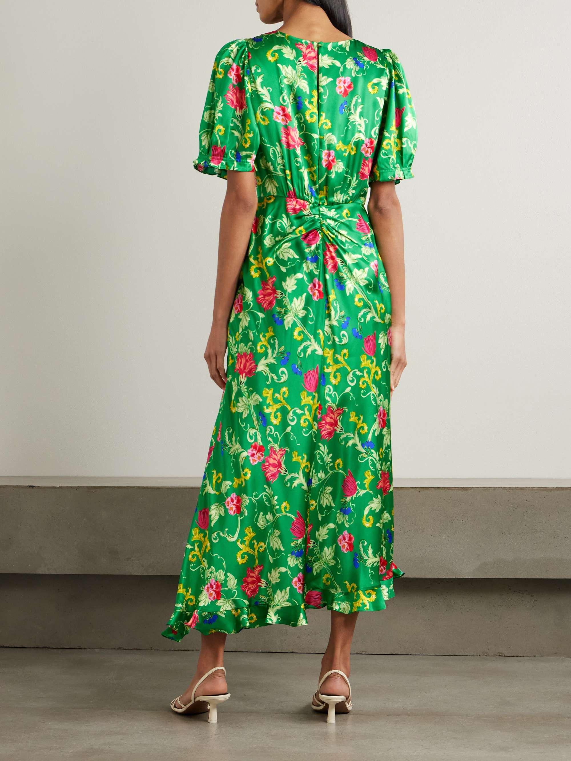 The lush ferns decorating Saloni's 'Vida D' dress will instantly revitalize your wardrobe. Made from lustrous silk-satin, it has lightly puffed sleeves and falls to an asymmetric hem traced with ruffles. Match your accessories to the print.