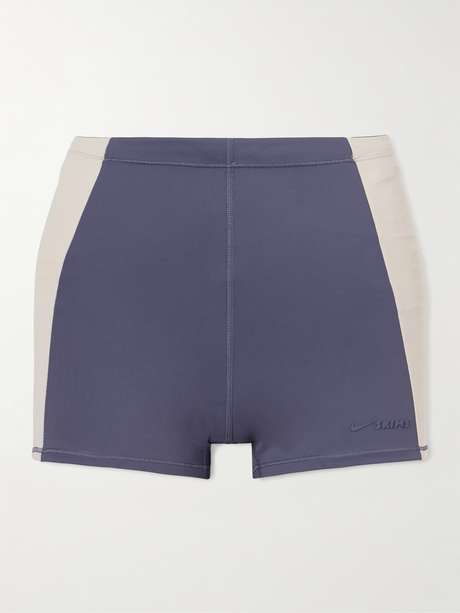 SKIMS and Nike combine performance innovation with the brand’s sculpting focus. Made from a mix of matte and shine stretch jerseys, these biker shorts use Nike's Dri-FIT™ technology to wick sweat and are defined by the color-blocked panels tracing the short silhouette.