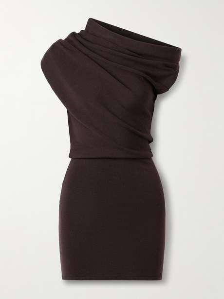 STAUD’s ‘Mabel’ dress is knitted from wool and drapes elegantly off one shoulder. It has a seamed waist and hugs your hips through the mini hem. Wear yours with strappy sandals and a glossy lip.