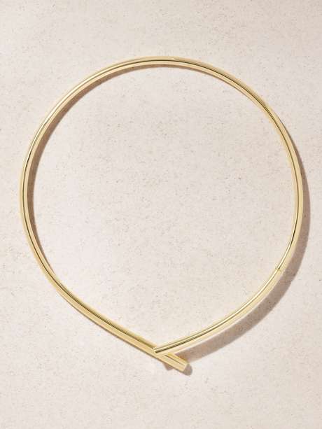 Tabayer's 'Oera' choker is a minimalist take on Inanna's knot – the ancient Mesopotamian symbol of wisdom and protection. It's been handcrafted in Italy from 18-karat gold and polished to a high-shine finish.