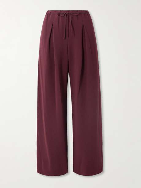 Theory's pants combine the smart look of tailoring with the comfort of more casual styles. Cut from burgundy crepe, they have pleated wide legs and an adjustable drawstring waistband. Style yours with blazers and chunky sweaters alike.