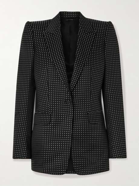 As Creative Director, Haider Ackermann continues to honor TOM FORD's exceptional eye for tailoring. This jacket is made from polka-dot duchesse silk-jacquard that has a beautiful luster. It's cut in a fitted, single-breasted shape framed by padded shoulders and peak lapels.