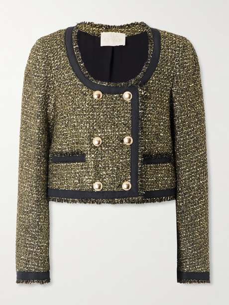 Ulla Johnson's signature bohemian style is inspired by her travels around the globe. This 'Anisa' jacket is made from shimmering metallic tweed with a double-breasted front, cropped hem and grosgrain-trimmed edges.