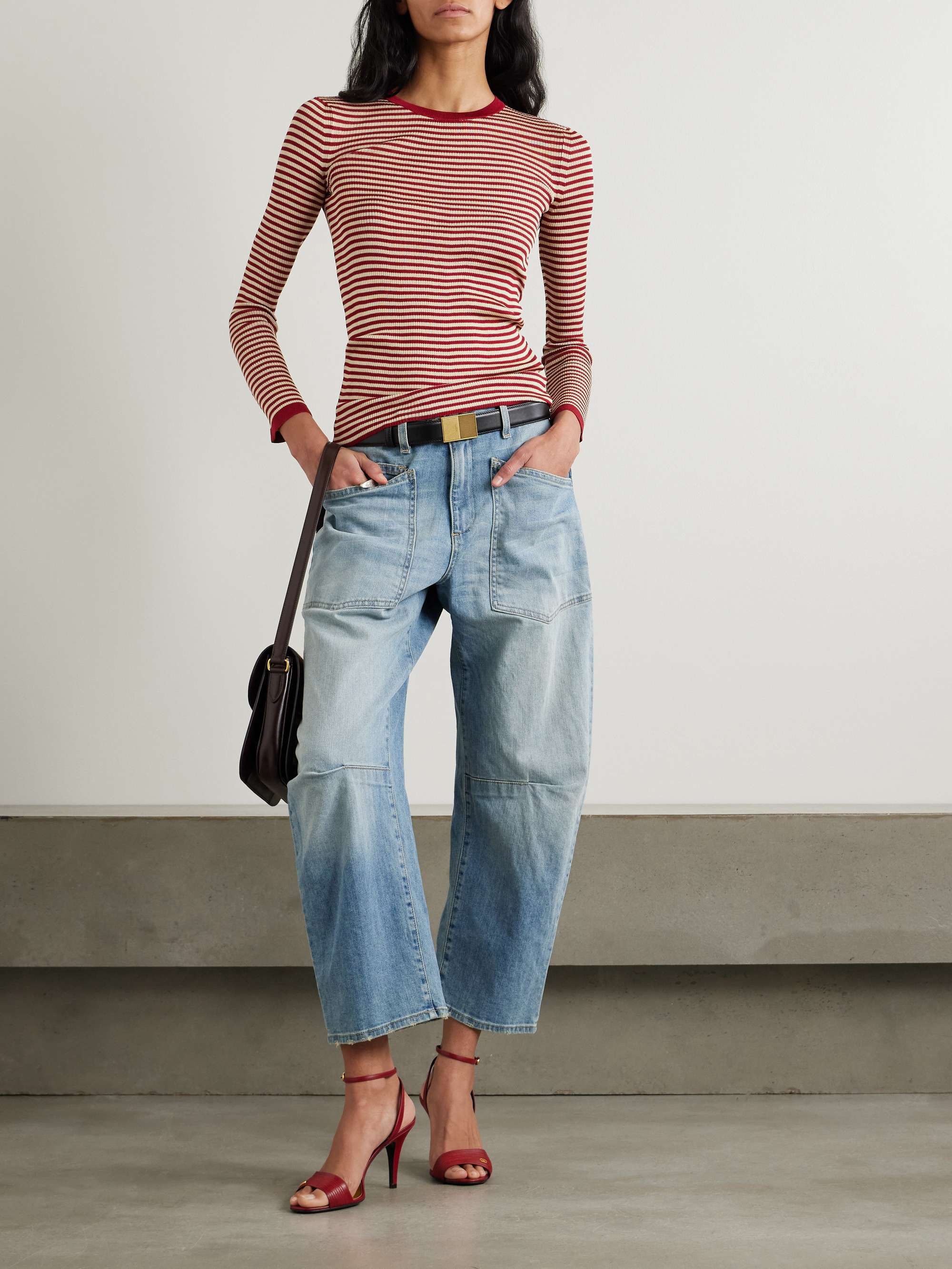 Valentino Garavani's sweater is knitted from silk in a red and cream striped pattern and has a textural ribbed finish. It's designed for a figure-hugging fit and complete with a petite version of the 'VLOGO' at the hip, so you may want to leave it untucked.