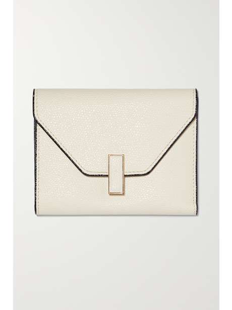 Valextra's coveted 'Iside' bag has been shrunk down to wallet-size, bearing the same signature twist-lock fastening. Made from cream textured-leather, it has an envelope shape and three separate compartments for your cash, cards and receipts. The zipped pocket is useful for storing important documents.
