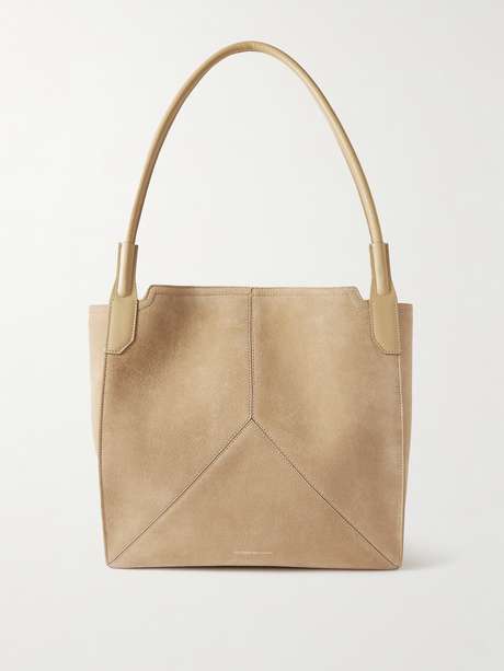 Victoria Beckham's mini 'Victoria Soft' tote is made from panels of buttery suede, minimally detailed with a foiled logo and topped with tubular leather handles that'll sit neatly on the crook of your arm. There's space inside for your phone, wallet and keys.