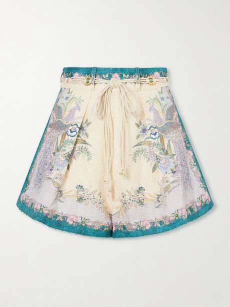 ZIMMERMANN Indra belted mid-rise floral-print linen shorts