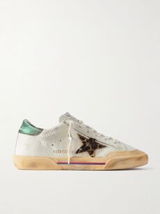 GOLDEN GOOSESuperstar Penstar distressed leather, leopard-print-trimmed rubber sneakers$345.00View Product DetailsSelect a Size35 - out of stock3637 - out of stock38 - out of stock3940 - out of stock41 - out of stock42 - out of stock