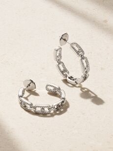 Small Move Link 18-karat white gold diamond hoop earrings
