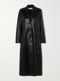 For FW23, brands such as Versace are solidifying the leather coat’s must-have status for ultra-modern outerwear. Its sleek ‘Icons’ style is fastened with the house’s iconic Medusa-encrusted gold-tone buttons, and features a streamlined silhouette to ensure it layers effortlessly over dresses and sweaters alike. Meanwhile, 16Arlington’s ‘Dvina’ coat, which is exclusive to NET-A-PORTER, comes with an exaggerated shearling collar in a tonal brown – throw it over one of the label’s cult sequin dresses for the ultimate London aesthetic.