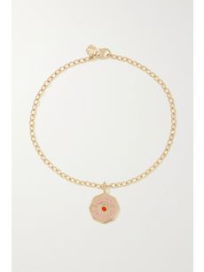 MARLO LAZMini Porte Bonheur Coin 14-karat gold, enamel and sapphire anklet