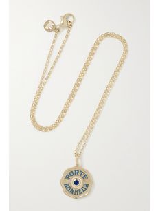 MARLO LAZMini Porte Bonheur Coin 14-karat gold, enamel and sapphire necklace