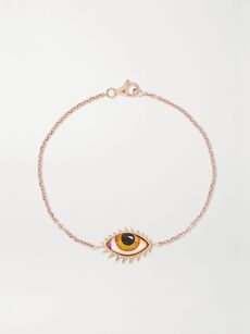 SYDNEY EVANEvil Eye 14-karat gold, sapphire, enamel and diamond bracelet