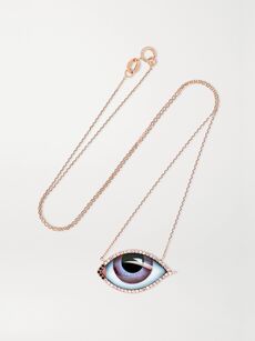 LITOTu Es Partout 14-karat rose gold, enamel and diamond necklace