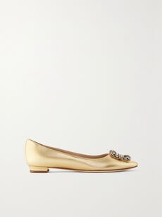 Hangisi embellished metallic leather point-toe flats