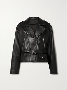 Aurelie belted paneled leather biker jacker
