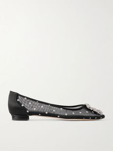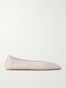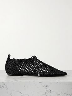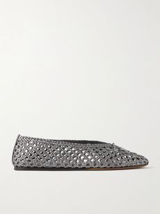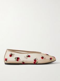Alaïa kick-started things back in 2022 with its sell-out fishnet ballet flats and has since served up several different takes on the design, including styles in woven leather and perforated suede. Christopher Esber is embracing the look, too, with its ‘Minette’ pair, which is covered in crystals and will work with wide-legged jeans and slip dresses alike. Alternatively, for something with a touch of color, try Khaite’s buzzy ‘Marcy’ design: the minimal ballet shape is cut in supple mesh, then reimagined with studding and embroidery – here, tiny red flowers make a subtle statement.
