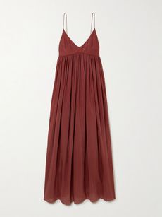 MATTEAUGathered organic cotton and silk-blend maxi dress
