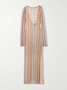 MISSONIMare metallic-trimmed striped crochet-knit maxi dress