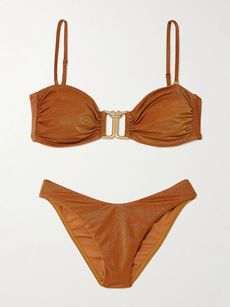 It’s never a good idea to leave swimwear shopping as an afterthought, as it’s worth investing time in finding the brands and styles that will make you feel your most confident. Hunza G’s signature crinkle-stretch swimwear has reached cult status, worn by the likes of Rosie Huntington-Whiteley, Rihanna and Hailey Bieber – its signature ‘Celine’ one-piece has been reimagined to offer more coverage and comes in a gorgeous emerald-green shade. If you are after a swimsuit in a more muted shade, St. Agni’s charcoal style, complete with a scooped neckline and open back, is a fail-safe choice. Elsewhere, printed string bikinis are currently making a splash – Lido’s striped style will look beautiful against turquoise seas.