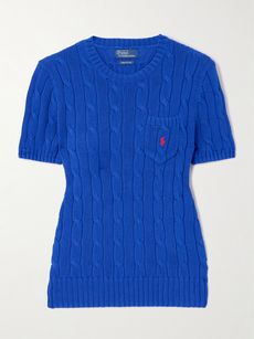 POLO RALPH LAURENEmbroidered cable-knit cotton sweater$64.00View Product DetailsSelect a Sizexx small - out of stockx small - out of stocksmall - out of stockmedium - out of stocklarge - out of stock