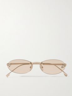 FENDI EYEWEARRimless oval-frame crystal-embellished gold-tone sunglasses