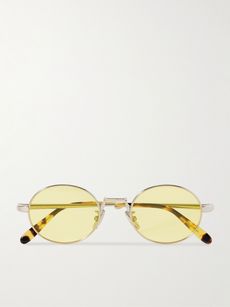 SAINT LAURENT EYEWEAROval-frame silver-tone sunglasses