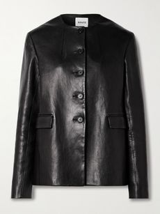 For her fall/winter ’25 Khaite collection, Catherine Holstein was inspired by the late, visionary film director David Lynch. The show notes opened with a quote from Lynch that read: “Stories have tangents; they open up and become different things. You can still have a structure, but you should leave room to dream.” The same can be said of our wardrobes – yes, you need the foundational pieces, the cashmere knits and great denim, but you should always leave space for the pieces you love purely because they make your heart sing. If you’re a Khaite fan, those pieces will no doubt be one of the brand’s impeccable leather jackets – the ‘Jameson’ style comes in a cool, collarless design. Its dream pairing? Styled with the ‘Quinn’ leather maxi skirt, it gives neo-noir vibes in the chicest way possible.
