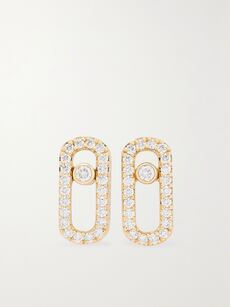 Just as important as the placements is the jewelry itself – working out which metal tone you prefer is the best starting point. “Yellow gold is still the most popular choice, but I see the demand for white gold is gaining momentum again, especially with larger diamond pieces,” says Anita Ko, an LA-based fine-jewelry designer. Ko’s best-selling ‘Safety Pin’ earring is regularly spotted on A-listers and is available in multiple hues of 18-karat gold and colored gems, so you can choose which best suits your skin tone and existing stack. Brian Keith Thompson, owner of LA’s iconic piercing studio Body Electric Tattoo, is also finding that requests for white gold are on the rise – he often pairs its cool tones with rose gold to add a fresh twist. As for gemstones? Suzanne Kalan’s baguette-cut sapphires and Mizuki’s teardrop-shaped diamonds are dainty enough to wear on your second or third lobe piercing alongside larger drops, while Maria Tash’s pavé-sprinkled ‘Mini Carson’ studs will add celestial shimmer to mixed-metal groupings. To elevate your everyday look, consider Messika’s signature, scintillating ‘Move Uno’ diamond earrings, à la British model Adwoa Aboah.