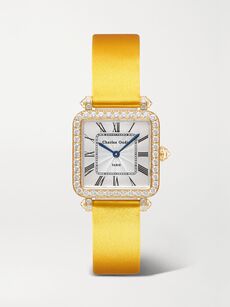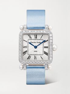 Jewelry watches rarely come as sophisticated as those created by Charles Oudin, the Parisian house founded in 1797. An under-the-radar favorite among horology cognoscenti, the family-run watchmaker specializes in bejeweled timepieces inspired by the classical architecture of Paris’s Jardin du Palais Royal and the geometric elegance of the Art Deco era. With vintage-inspired square dials and satin straps in shades ranging from royal blue to raspberry pink, the brand’s diamond-edged designs are refined and dazzling in equal measure. The ideal feminine counterpoint to masculine tailoring.