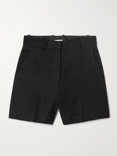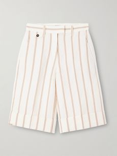 Pinstriped linen and cotton-blend shorts