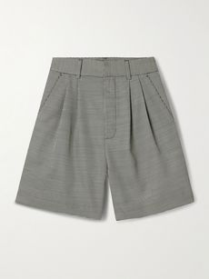 Carrie pleated houndstooth wool-blend shorts