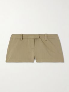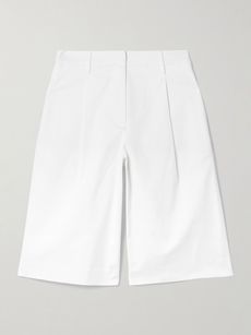 Pleated organic cotton-blend twill shorts