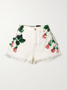 Brace yourselves: SS25 marks the return of seriously At Maximilian Davis presented thigh-skimming styles in frayed black and white denim; Donatella opted for ’90s-inspired hot pants, which she offset with long-sleeve shirts and and went full boho with tiny lace-up suede iterations. The golden rule to nailing a trend like this is to balance proportions, opting for billowy, oversized tops and jackets rather than anything fitted to keep things chic. With summer just around the corner, floral-print denim shorts from its collaboration with Paula’s Ibiza are ideal for warm-weather getaways, and are easy to throw on with swimwear, blouses and logo tees.
